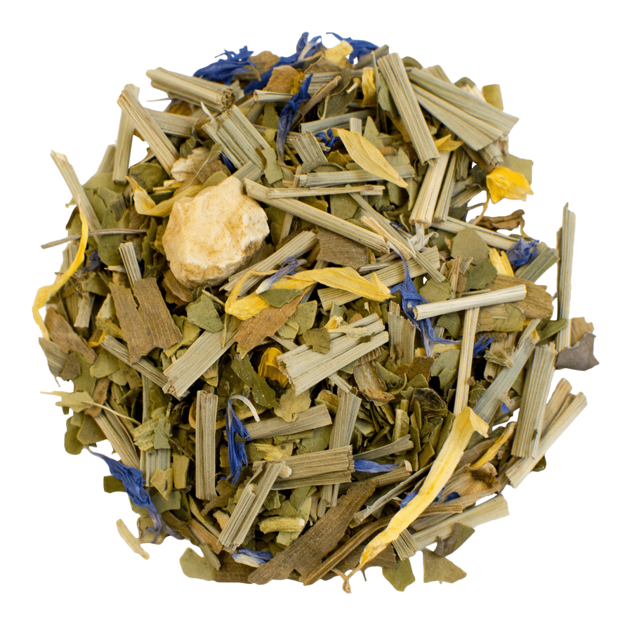 Ingredients: Green mate, Lemongrass + Spearmint leaves, Gingko + Ginseng + Nettle pieces, Calendula + Cornflower + Sunflower petals