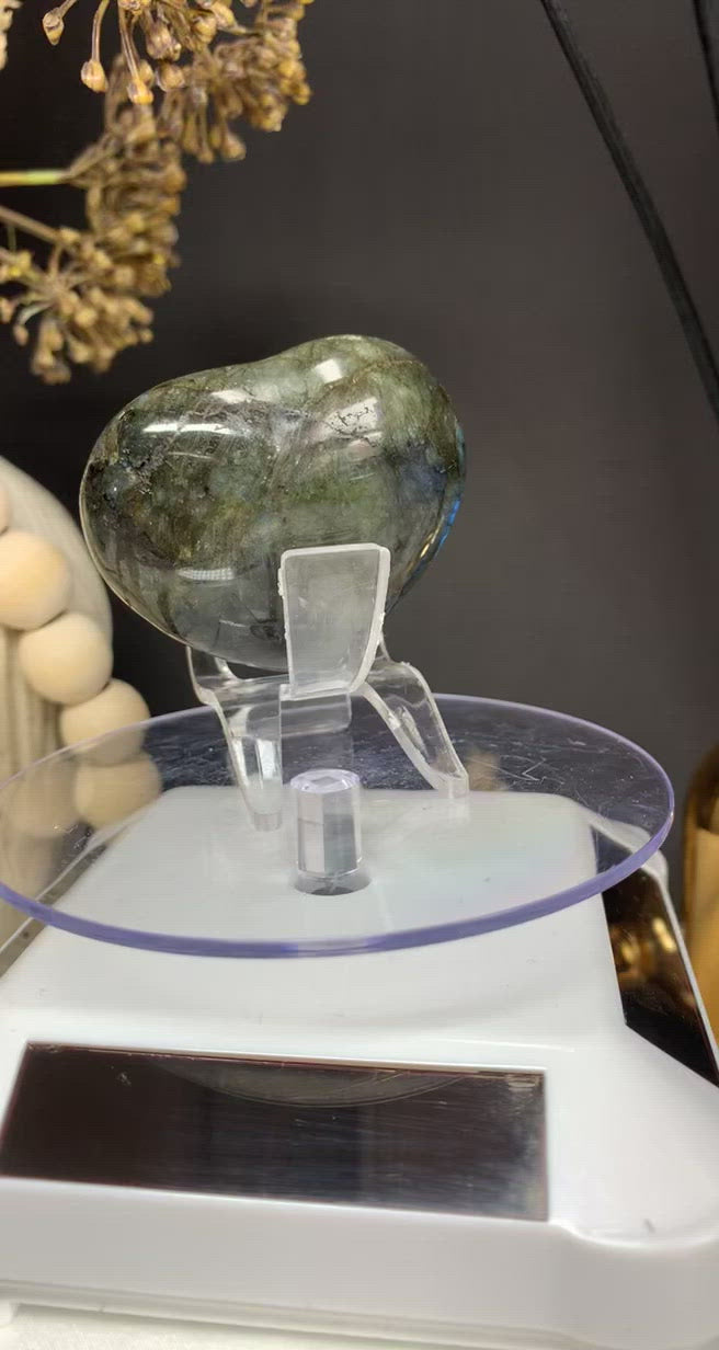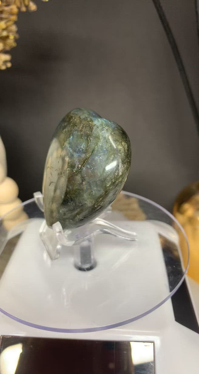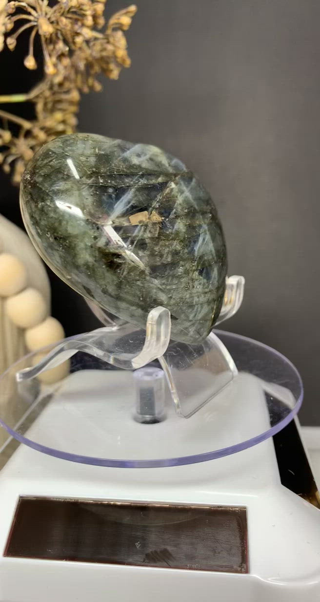 Labradorite is a purifying stone that connects you with the energy of light. It helps to calm an overactive mind, and brings energy to the imagination. Its purifying nature can help to clear away baggage, and allow you to discover your inner self and true life purpose. It is a powerful protection stone that strengthens your natural energies. Labradorite clears and opens all of the Chakras, creating balance within yourself and centering your energy. It aids in magnifying your intentions, and brings you closer to your intuition and spirituality. Labradorite is a powerful stone that clears the mind and soul while simultaneously protecting you from negative energies.